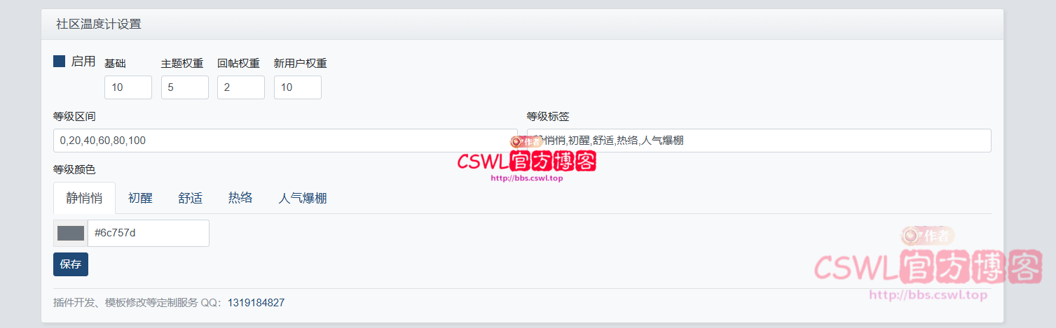温度计算**:根据今日发帖、回帖、新注册会员数量,按可配置权重计算温度值(0–100°C)
