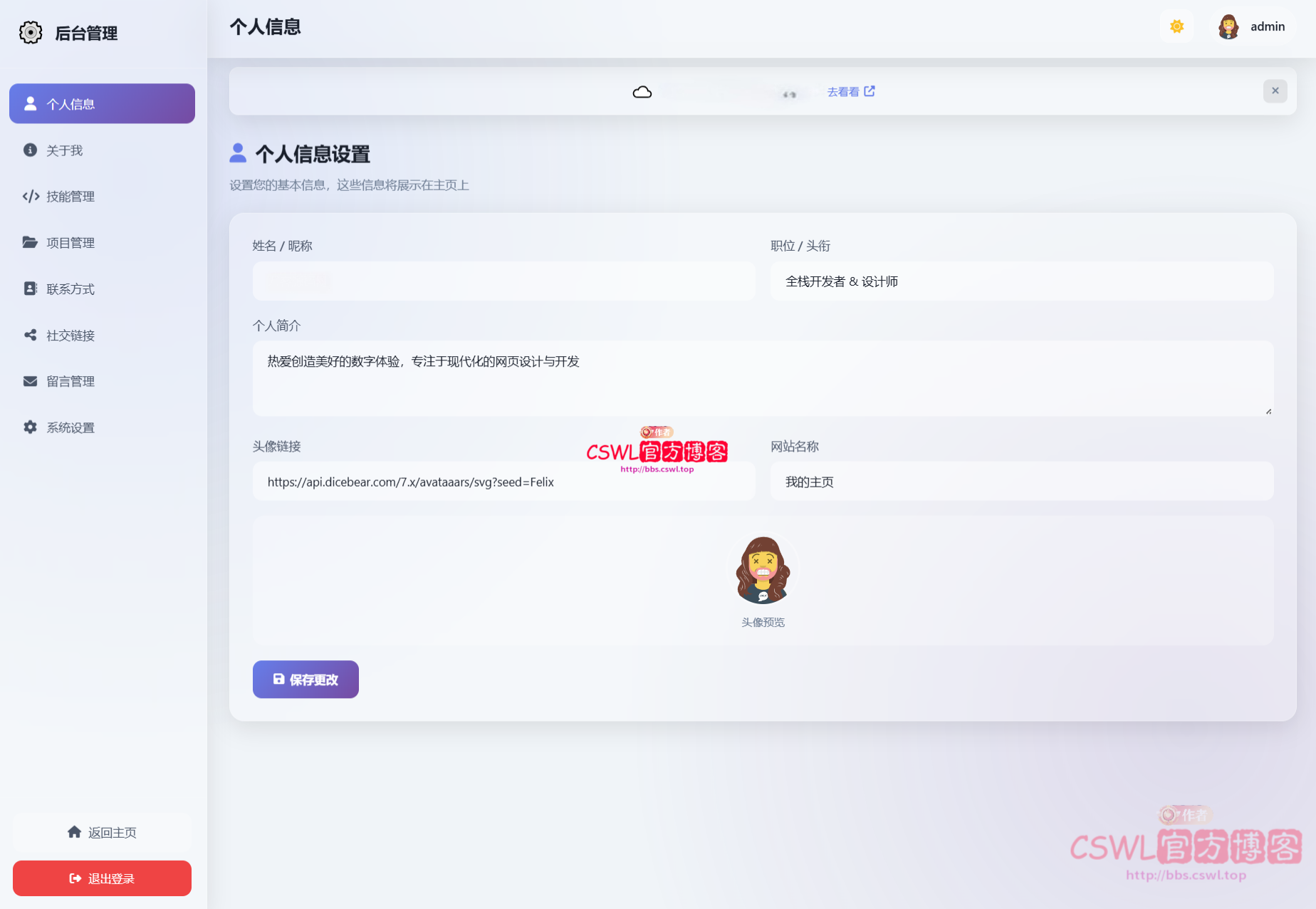最新精美个人主页系统源码